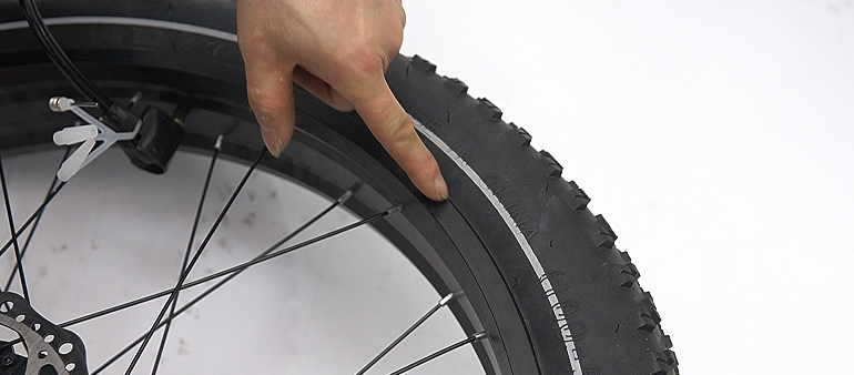 Step 6: Inflate the tire, pumping it until the inner tube is about halfway filled with air. Check if the safety line on the outer tire is approximately 1mm away from the rim and evenly distributed.