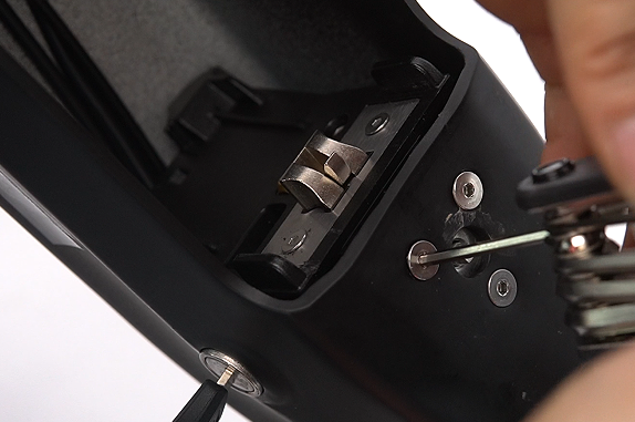 Step 8: Remove the three hex screws on the seat of the battery base and remove the battery seat.