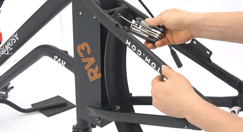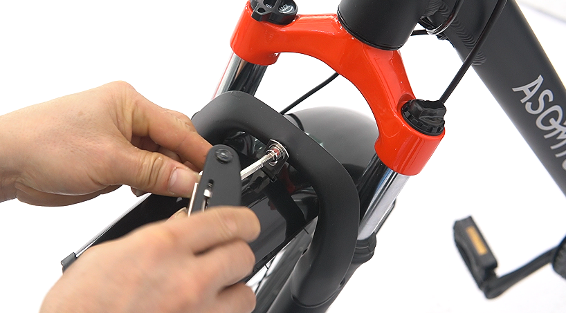 Step 2: Use the multi-function hex wrench to unscrew the screws on the left and right brackets of the front mudguard.