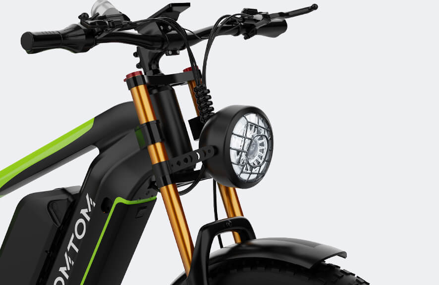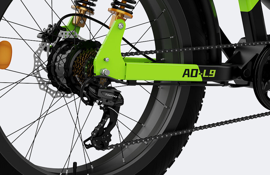 The L9’s dual-crown suspension fork is engineered for serious off-road performance. With premium materials and rugged construction, it absorbs shocks effortlessly and keeps your ride stable on rough trails. Whether you’re climbing, descending, or cruising through the city, the front suspension enhances control, comfort, and confidence.