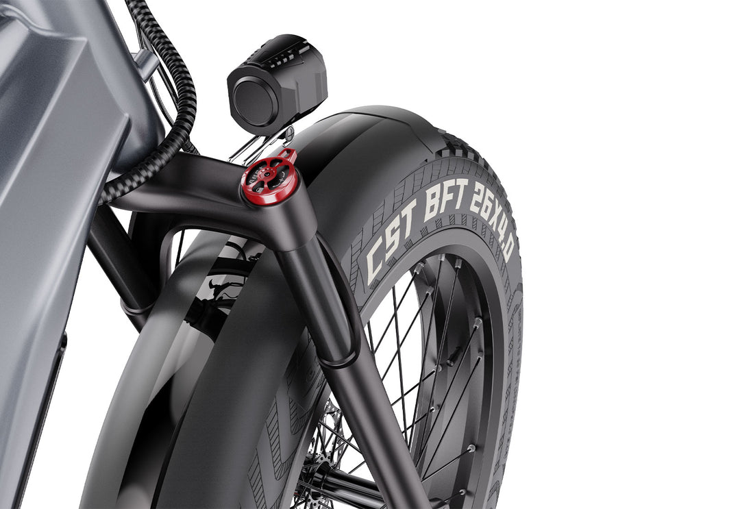 Equipped with 26x4.0 fat tires, experience ultimate stability across all terrains, ensuring a smooth journey from city streets to rugged trails.