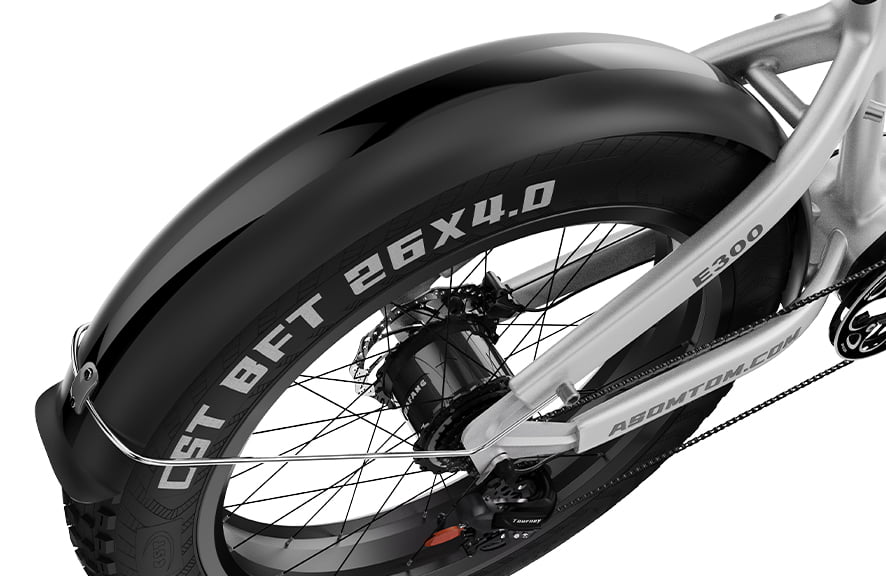 The 26"x4.0" all-terrain tires excel in diverse landscapes. From beaches to mud and snow, they ensure superior grip, enabling riders to tackle any terrain boldly.