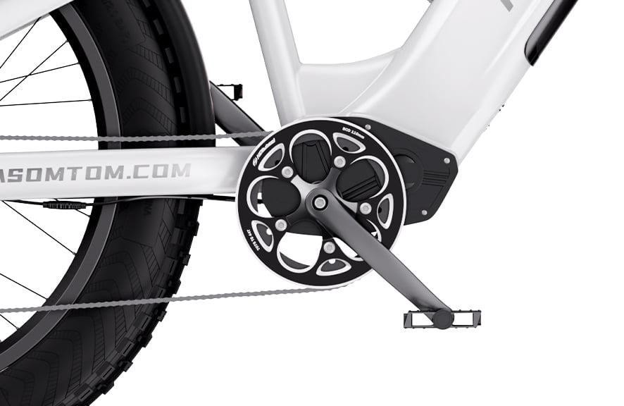 The double-guard crankset ensures optimal chain retention. This design significantly minimizes the risk of chain derailment, offering riders a more reliable and hassle-free experience.