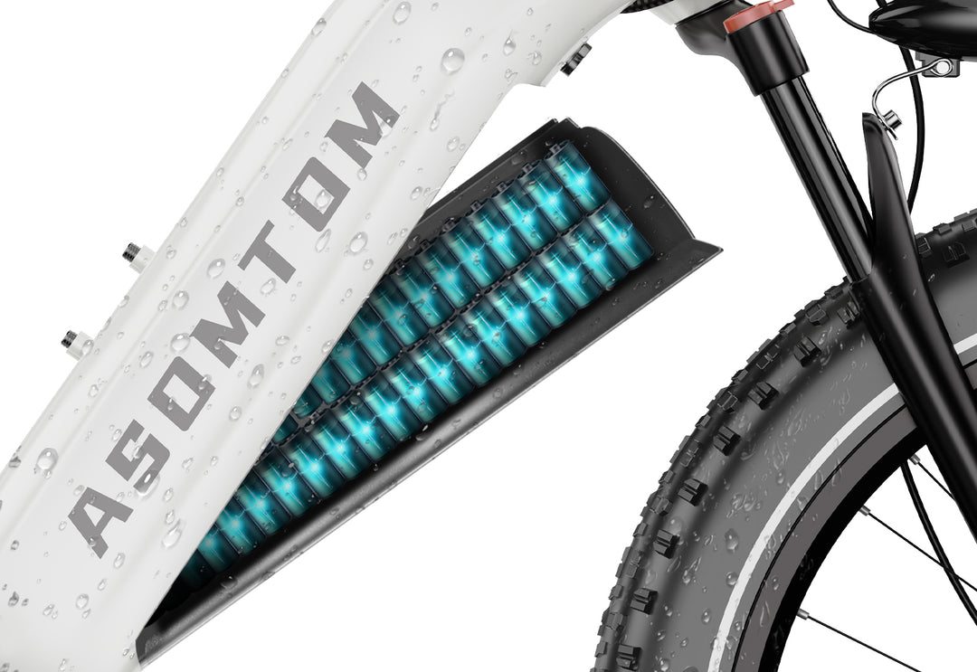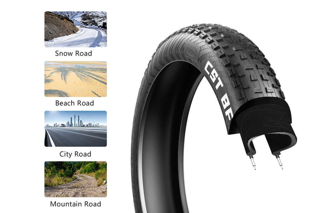 The 26"x4.0" all-terrain tires excel in diverse landscapes. From beaches to mud and snow, they ensure superior grip, enabling riders to tackle any terrain boldly.